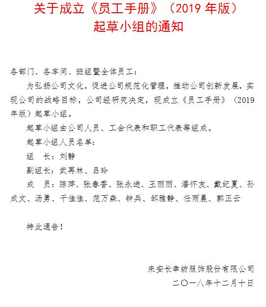 夏少文律師首先講解了員工手冊的作用、意義以及法律效力,為弘揚公司文化,促進公司規范化管理,推動公司創新發展,實現公司的戰略目標,公司成立了《員工手冊》(2019年版)起草小組,起草小組由公司管理人員、工會委員和職工代表組成。