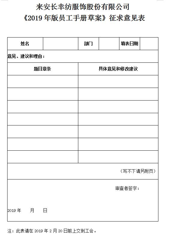 夏少文律師其次宣講了來安長幸紡服飾股份有限公司《員工手冊》(2019年版)草案具體內容有公司簡介及理念、企業文化、組織機構、員工要求、員工義務、員工權利、獎懲條例、考勤管理、員工福利等與員工息息相關內容。并對主要章節進行了的解釋說明,以便大家更好領會員工手冊精神和員工手冊內容。